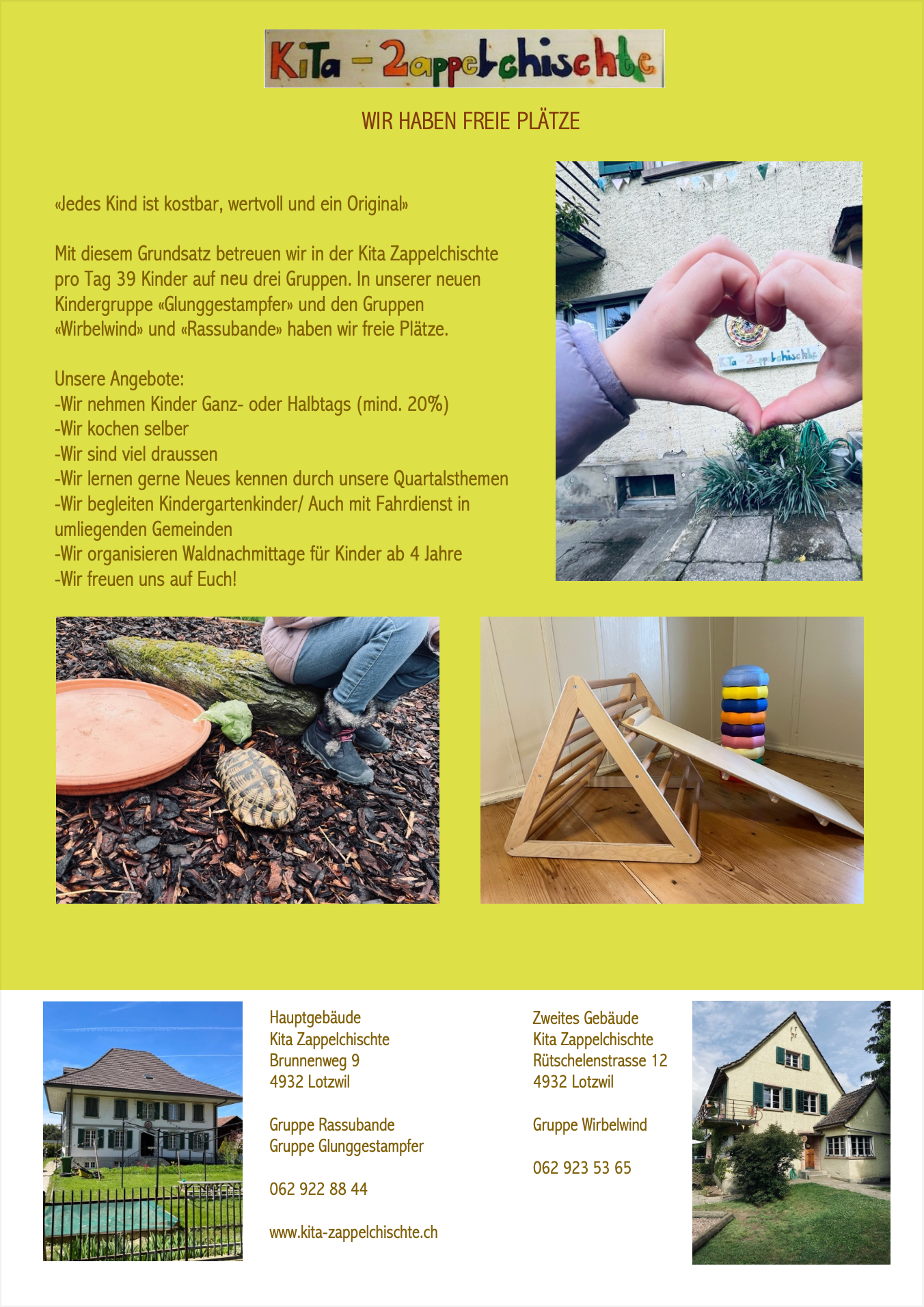 Wir haben in unseren Kindergruppen freie Plätze: